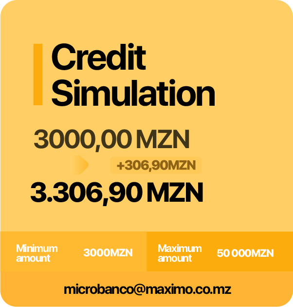 O reembolso do crédito é feito em uma prestação única. A instituição na qual trabalha realiza a retenção na fonte da prestação e faz a canalização dos valores directamente para a Maximo Microbanco, garantindo maior comodidade e segurança.